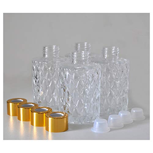Ougual 4 Pezzi Bottiglie di diffusore in Vetro cilindrico con Intaglio di Diamanti, Contenitore per Oli Essenziali (150ML, Cappucci d'oro)