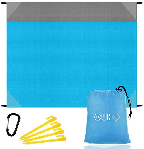 OUHO Coperta da Spiaggia 145x190cm Tappetino da Picnic Anti Sabbia Portatile Impermeabile con Reticule e 4 Picchetti Fixed per Picnic Spiaggia Viaggi Escursionismo