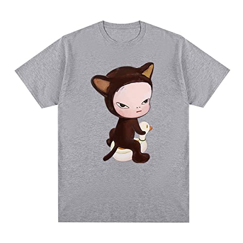 OUHZNUX Yoshitomo Nara Cat Duck Print Cotton T-Shirt, Fashion Cartoon Loose Casual Comodo Pullover Manica Corta, Street Hip Hop Unisex Sport Top (XS-3XL)