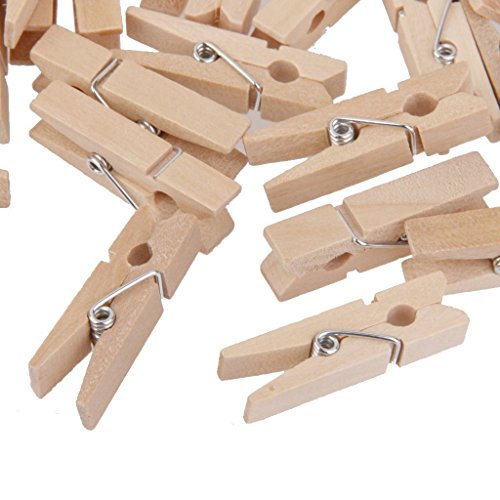 Ouinne 100 Pezzi Mini Mollette, 35MM Mollette di Legno Vestiti Naturali Clip con 50 Metri Spago Luta per Foto Biglietti Scrapbooking Matrimonio