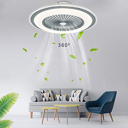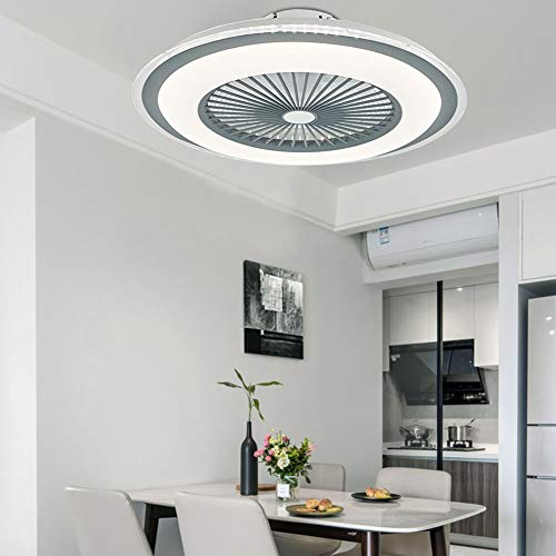 OUKANING - Ventilatore da soffitto con telecomando e luce da soffitto a LED, dimmerabile, ventilatore interno alla lampada, ultra silenzioso, per soggiorno (grigio)