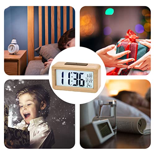 Ouken Digital Alarm Clock Wooden Alarm Clock Digital Clock Small Led Wooden Bedrooms Bedside Clock with Snooze Function