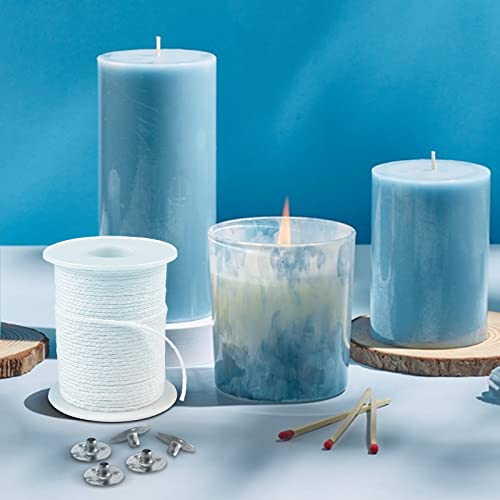 【Materiale ecologico】 Il nostro stoppino per candele in cotone è realizzato in materiale di cotone più toppa di base in acciaio inossidabile, senza fumo nero, facile da bruciare. Include un rotolo di filo di cotone per candele e 100 toppe di base