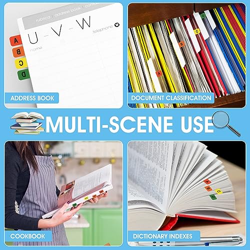 Dimensioni appropriate: ogni etichetta misura 1,1 × 2 cm, perfetta per essere attaccata a libri di testo, dizionari, quaderni, rubriche e molto altro ancora. Attaccali al lato della pagina per un'indicizzazione rapida!
