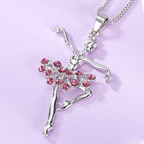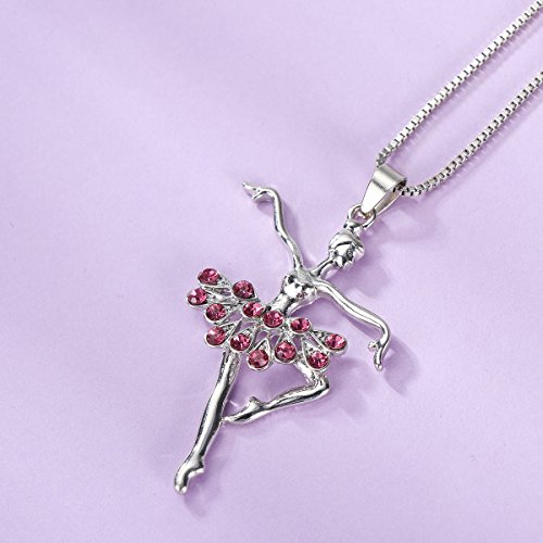 OULII Collana con ciondolo a forma di ballerina con strass Rosso per regalo di festa della Mamma