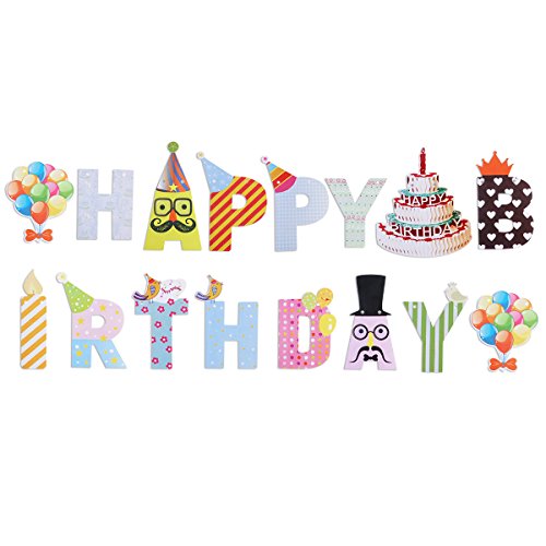 OULII - Festone di carta con scritta "Happy Birthday", per feste di compleanno