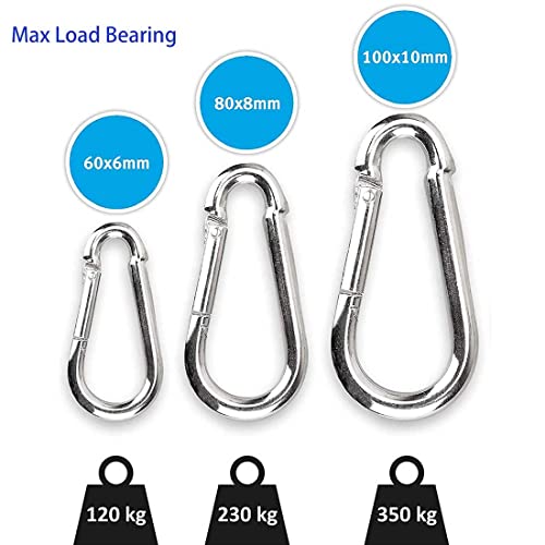 OULVLIFE Moschettone di bloccaggio, moschettone per impieghi gravosi, 80mm moschettone in acciaio al carbonio zincato
