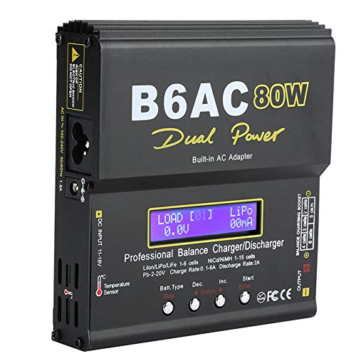 Oumefar Caricatore bilanciato batteria digitale LCD da 80W Caricabatteria da 1-6 celle LiPo per batteria Li-ion Li-Po NiCd Ni-MH RC