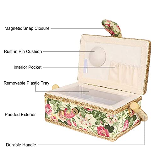 Oumefar Cestino per cucito artigianale Organizzatore per cucito Scatola portaoggetti per cucito Famiglia per ago per filo Organizzazione domestica(Garden rose)
