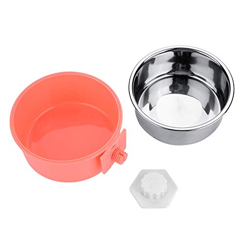 CIOTOLA 2 IN 1 RIMOVIBILE: Questa ciotola per animali domestici è composta da una ciotola di plastica e una ciotola di acciaio inossidabile, puoi separarle in due ciotole. La ciotola interna in acciaio inossidabile è staccabile, puoi fissare la ciotola di plastica sulla gabbia e rimuovere la ciotola in acciaio inossidabile per la pulizia