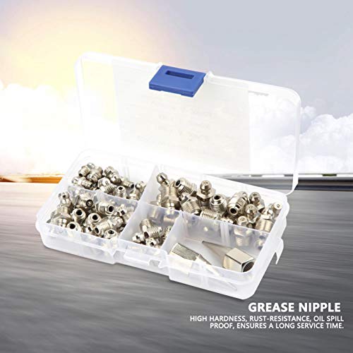 【SPECIFICHE DEL PRODOTTO】 Un pacchetto di 60 kit assortimento di raccordi per ingrassatori, utilizzato per alimentare il lubrificante in un cuscinetto.