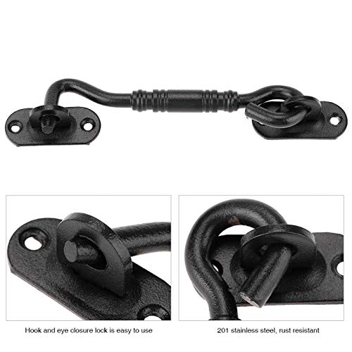 Oumefar Gancio per Cabina in Acciaio Inossidabile Nero e Chiusura a Occhiello Serratura Scorrevole per Porta del fienile Serratura per partizione Gancio per Porta per Finestra