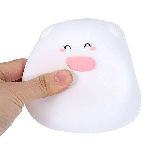 Oumij Lampada da Comodino 2 tipi Lampade da Tavolo Mini Maiale Carino Dimmer a 3 Livelli Gel di Silice Lampada da Notte a 7 Colori Luce Notturna a LED in Silicone LED(Smile Pig)