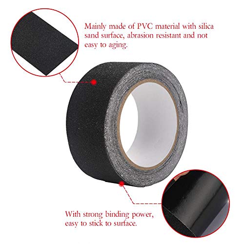 Oumij Nastro Antiscivolo, Striscia Antiscivolo, Nastro Antiscivolo per Scalini, per Decorazione e Avvertenza - Battistrada per Scale, Gradini, Interno, Esterno(Nero)