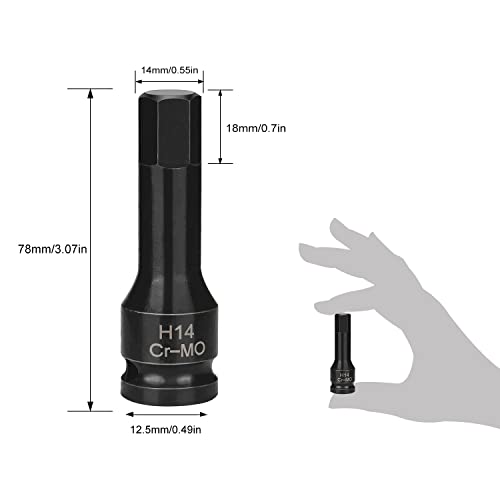 Oumuik Presa esagonale H14 (14 mm) Presa 1/2 Drive Impatto Hex Bit Socket Cr-Mo Steel