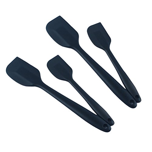 Ounona - Set di 4 spatole in silicone resistente al calore, 2 spatole grandi e 2 piccole, lavabili in lavastoviglie e forno (nero)