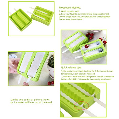 Rimozione facile. stampi Popsicle sono realizzati in morbido silicone alimentare, è più facile per il pop congelati a scivolare in stampo. Proprio pelarle delicatamente con le mani. Pertanto, si permette ai bambini di ottenere un sacco di più gustosi dolcetti sani.