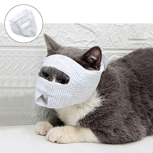 OUoNNo - Museruola traspirante per gatti in cotone, per toelettatura e rifilatura delle unghie, supporto per gatti impedisce ai gatti di mordere, miagolare, masticare, graffiare (M, stile 1)
