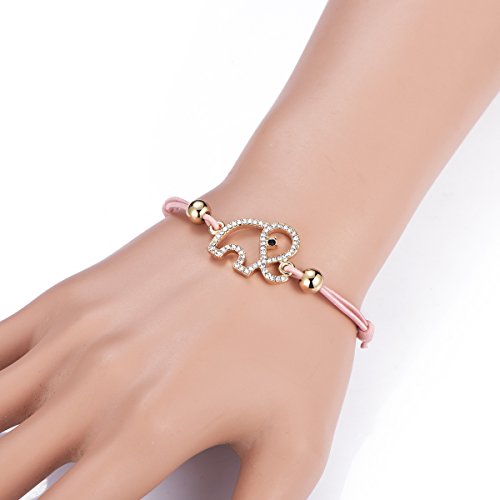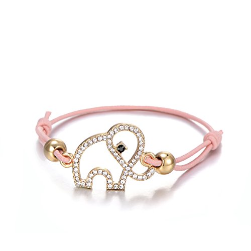 Ouran Bracciale da donna fortunato elefante braccialetto nodo amicizia bracciale nero regolabile bracciale bracciale bracciale con cristallo