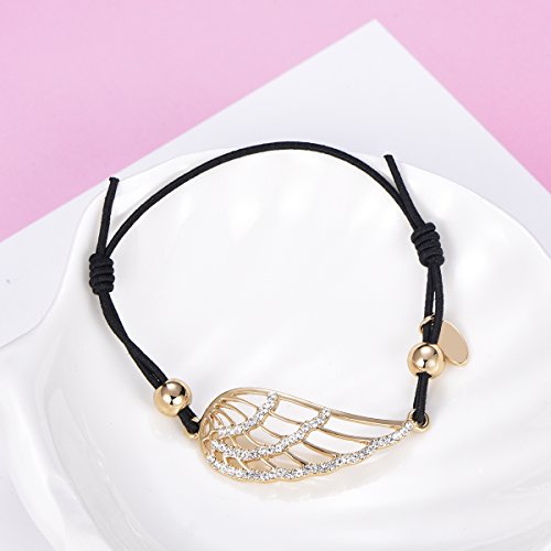 Ouran Braccialetto di Fascino delle Donne, Braccialetto di Ali di Angelo Fortunato Braccialetto di Braccialetto di Braccialetto Regolabile di Cavo di Cera Nero con Cristallo (Placcato Oro)