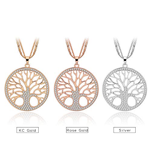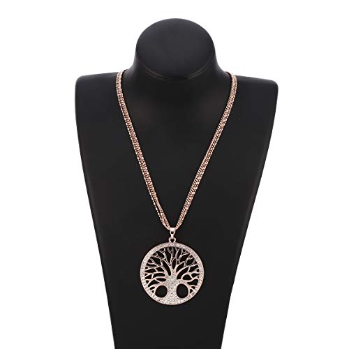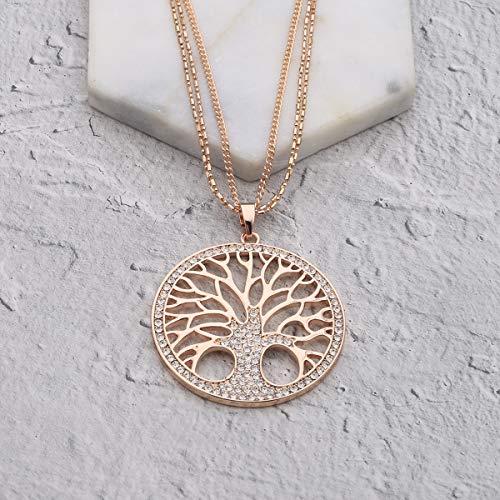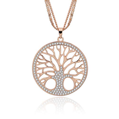 Ouran, collana da donna, con ciondolo a forma di albero della vita, regalo per ragazze, in oro rosa o argento, collana lunga con cristalli e placcato Argento, cod. XL07973