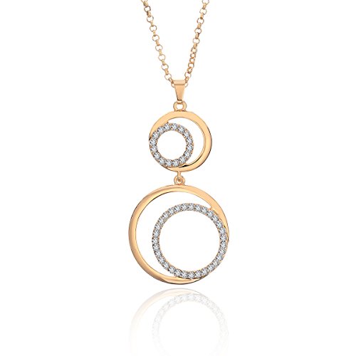 Ouran Collana Lunga per Le Donne, Collana con Ciondolo a Cerchio per Ragazze Regalo Collana con Catena d'Argento Oro Rosa con Cristallo (Placcato Oro)