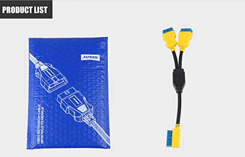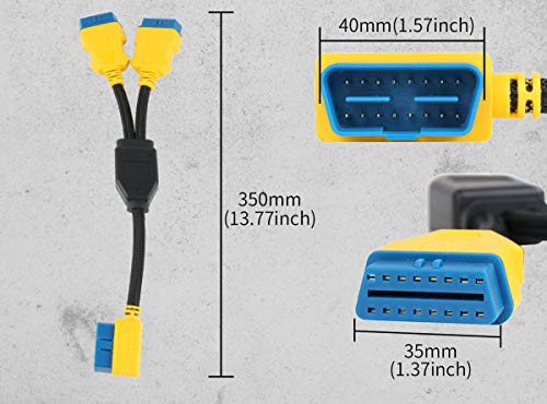 Cavo di prolunga OBD2 da 1 a 2: lunghezza totale: 35 cm, diametro del cavo di prolunga in nylon OBD-2: 10 mm (più spesso del normale adattatore per prolunga).