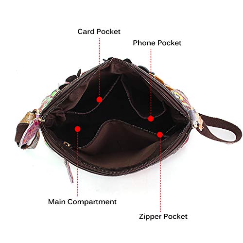 OB OURBAG Borsa a Tracolla a Fiori Multicolore in Vera Pelle Con Tracolla per Donna