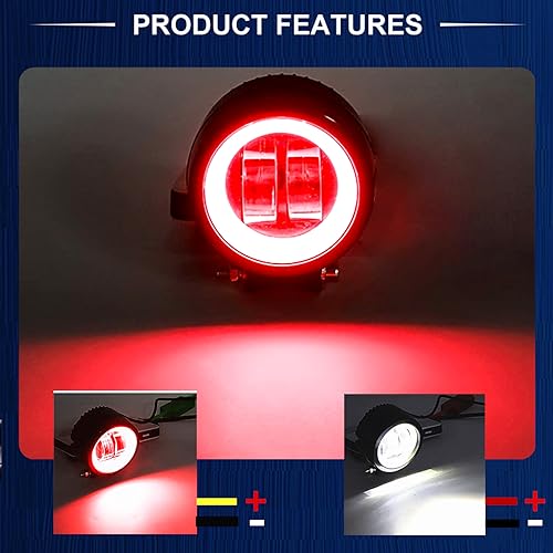 Ourbest Faretti a LED per moto, 9-36 V, fendinebbia con interruttore, luci ausiliarie per moto, luce bianca e rossa, 1 paio per moto fuoristrada