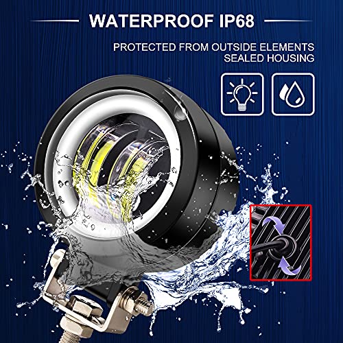 Luci di marcia diurne con lenti 4D in policarbonato: luci LED rotonde Angel Eye, fendinebbia a LED da 20 W adottano lenti PC 4D per ridurre la perdita ottica, offrono un effetto luminoso più ampio e più lungo, perfette per la guida notturna, garantendo la tua sicurezza