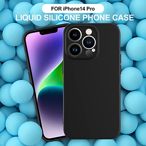 Oureidoo Cover per iPhone 14 Pro con 3 Pezzi Pellicola Vetro Temperato, Custodia in Morbida Silicone Liquido, Sottile e Antiurto con Rivestimento in Microfibra AntiGraffio, Nero