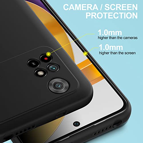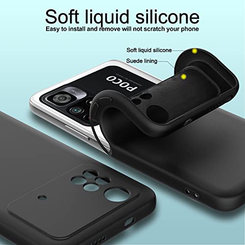 Oureidoo Cover per Xiaomi Poco M4 Pro 4G con 3 Pezzi Pellicola Vetro Temperato, Custodia in Morbida Silicone Liquido, Sottile e Antiurto con Rivestimento in Microfibra AntiGraffio, Nero
