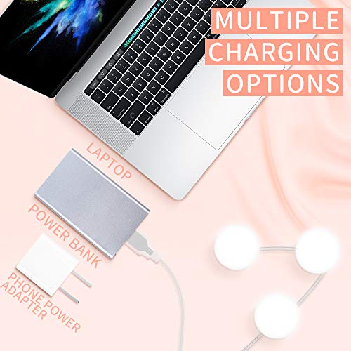 Alimentato tramite USB per uso di sicurezza: Luci Specchio Make Up sono alimentate da USB, che possono collegare l'adattatore di alimentazione DC 5 V. Luci Specchio del bagno sarà più sicura rispetto al caricatore dell'adattatore. Non sono necessari cavi o spine. Le luci dello specchio sono porta USB per dispositivi di ricarica.