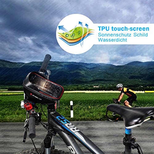OUSPT Borse Telaio Bicicletta, Borsa da Bicicletta Impermeabile con Touch Screen Supporto Fino a 6" Smartphone per Phone XS MAX/XR/X/8Plus/Samsung/HuaWei/Xiaomi/HTC e Altro