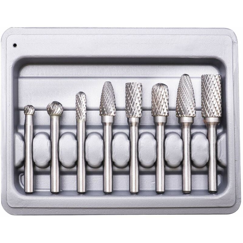Colore come mostrato Taglia: 14*11*2,4 cm Peso: 310 grammi 【SET TAGLIA IN METALLO DURO PREMIUM】: Questo set include 8 delle forme più popolari in una custodia aderente. Con gambo da 1/4 di pollice, adatto per la lavorazione di vari metalli e la maggior parte delle smerigliatrici rotanti. Scelta eccellente per la rimozione precisa del metallo durante la sagomatura, il livellamento o il porting di ghisa, acciaio e altri metalli ferrosi. 【DOPPIA TAGLIO PRECISO】: Stile a doppio taglio, le scanalature elicoidali destra e sinistra si combinano per produrre un dente di taglio del tipo a scalpello, questa precisione, se combinata con smerigliatrici di precisione, si traduce in un funzionamento regolare, una rapida rimozione del metallo e finiture fini. 【AMPIA APPLICAZIONE 】: Ampiamente usato per la lavorazione dei metalli, la fabbricazione di utensili, la modellistica, l'intaglio del legno, la creazione di gioielli, la saldatura, la smussatura, lo stampaggio, la sbavatura, la molatura, il