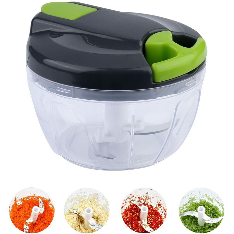 I colori sono quelli mostrati nell'immagine principale. Risparmio di tempo e versatilità: questo veloce tritatutto manuale ti aiuta a tritare verdure, frutta e noci. Una manomissione fa risparmiare molto tempo in cucina. Se metti il cibo in una ciotola e tiri la corda una volta, puoi tagliare il cibo 15 volte. Anche le cipolle non ti faranno piangere. Puoi anche usarlo per salse e chutney. Robusto e sicuro: il coperchio, il manico e il portacoltelli del macinino sono realizzati in materiale PP, il materiale della ciotola trasparente è in plastica atossica e la ruota dentata è in materiale POM. La lama affilata in acciaio inossidabile sminuzza e sminuzza rapidamente. La ciotola è priva di BPA e sicura da mangiare. Puoi preparare il cibo per il tuo bambino. Non è richiesta elettricità. Facile da pulire: tutte le parti sono rimovibili e lavabili. Con 3 lame sul coperchio, la ciotola e le lame possono essere separate, rendendo il macinino facile da pulire. Basta sciacquare con acqua e