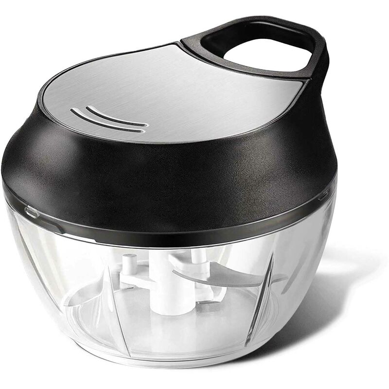 Tritatutto manuale in bianco e nero Per tutti gli usi: il nostro robusto tritatutto manuale ti offre la possibilità di tritare rapidamente con la massima facilità. Con lame in acciaio inossidabile affilate e resistenti e un cavo di trazione durevole, questo è il dispositivo perfetto per tritare ingredienti duri come zenzero, aglio, carote, pomodori, carne, pollo, cipolle, peperoni, ecc. Operazioni: imposta questo su semplicemente attaccando la lama;
