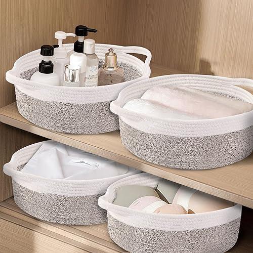 Fatto a Mano e Durevole: I cestini portaoggetti sono realizzati a mano da abili artigiani, la corda di cotone ad alta elasticità garantisce una durata sufficiente.Può essere piegato a piacimento senza deformazioni, il che soddisfa l'aspetto semplice ed elegante e la praticità di vari.