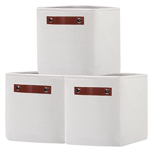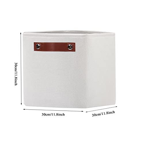 OUTBROS Set di 3 Cesto portaoggetti in Tessuto, 30 * 30 * 30 cm Scatola di immagazzinaggio di pieghevole, Cestini Portaoggetti con 2 Maniglie, per Vestiti, Asciugamani, Giocattoli (Bianco)