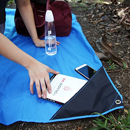 Outdoor Panda Nueva Manta de bolsillo de 155x140cm | Manta para Picnic/Playa ultraliviana y Grande, hecha de Nylon a prueba de Agua con estuche compacto de Color Azul | Perfecto para Caminatas