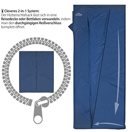 Outdoro Sacco a pelo da viaggio, ultraleggero - Solo 350 g, in microfibra con scomparto per cuscino - Sottile e di taglia piccola - Come federa, lenzuolo da viaggio
