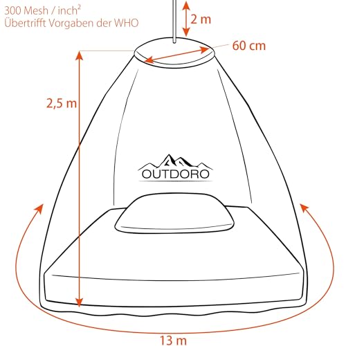 Outdoro Zanzariera da viaggio con gancio adesivo - Extra grande per letto matrimoniale e letto singolo - Zanzariera baldacchino, bianco