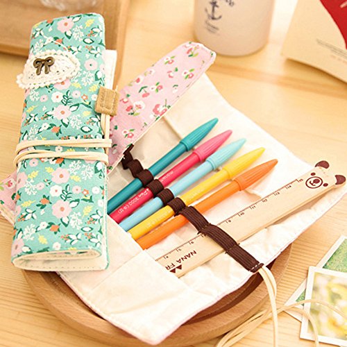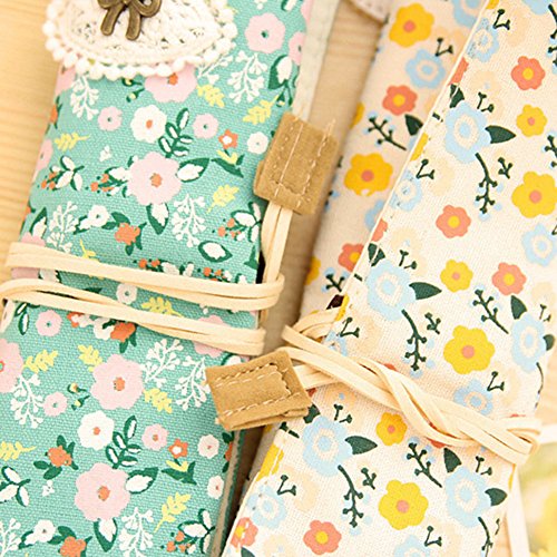 Outflower tela matita Wrap Fresh pastorale floreale penna rotolo di carta di stoccaggio della penna borsa rosa, Tela, Beige, 19.4*6.5CM