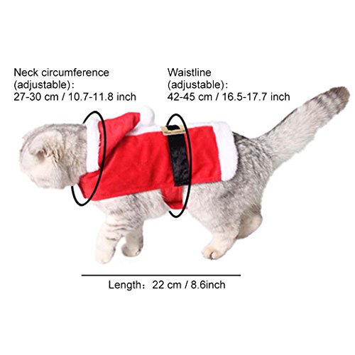 Outgeek Costume Natale Gatto, Mantello Babbo Natale Regolabile Abbigliamento per Babbo Natale con Campane Vestito Natalizio per Cani e Gatti Regalo Dolce