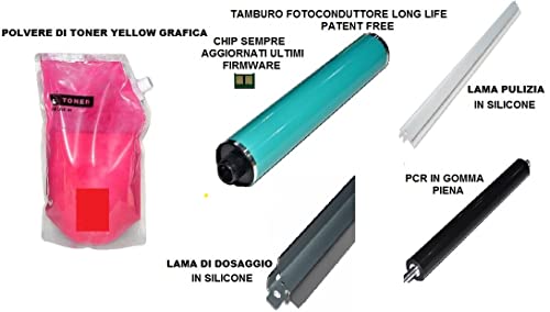 【CARATTERISTICHE TECNICHE】La produzione delle cartucce compatibili High Quality Premium prevedono l'utilizzo di polveri di toner Microfine Grafica prima qualità - Tamburi Long Life - Lame di Pulizia in silicone - Lame di dosaggio in acciaio con protezione in silicone - PCR di trasferimento in gomma piena trattata e NON in spugna ricoperta da pellicola, (le cartucce che utilizzano il PCR in spugna costano meno ma spesso sporcano il foglio) - Chip riconoscimento cartucce aggiornati ultimi Firmware