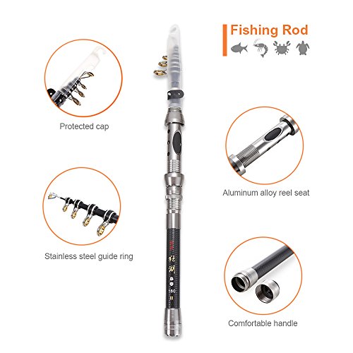 Asta telescopica: realizzata in super resistente e rigida in fibra di carbonio, con manico ergonomico rende più comodo e più facile da pesca. Ultraleggero e telescopica, può adattarsi facilmente in auto bagagliaio portellone, barca o zaino.