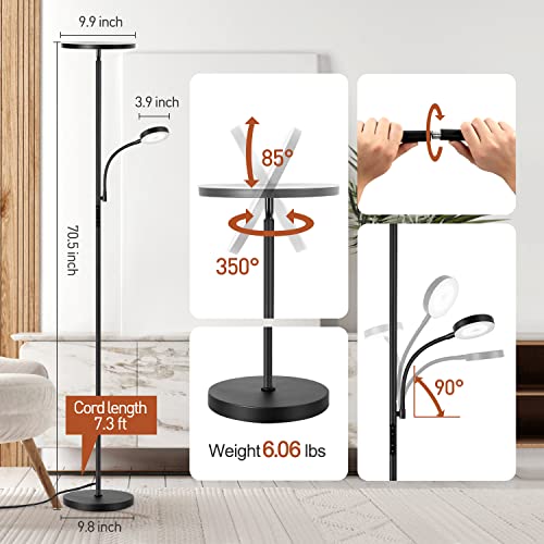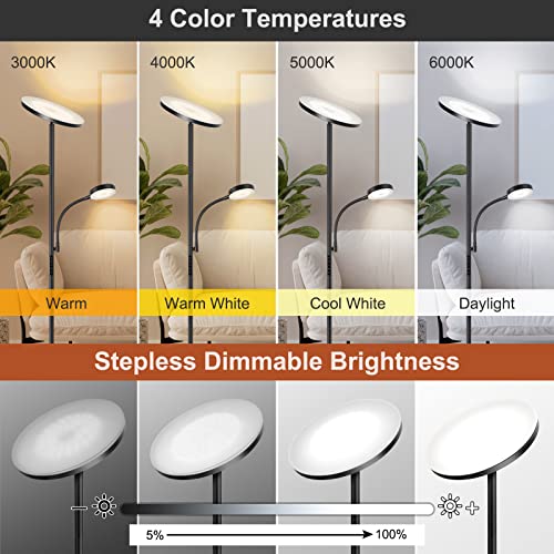Funzioni Super Bright & Differenti: Costruito in 126 + 28 LED ad alta luminosità, fino a 2800 + 400 lumen lampada da terra dimmerabile stepless è sufficiente per illuminare il vostro soggiorno. La torcia principale da 27W illumina senza sforzo l'intera stanza e la lampada laterale da 7W con collo d'oca flessibile può essere regolata liberamente in diverse direzioni, perfetta per qualsiasi compito, come la lettura, il lavoro o il cucito.