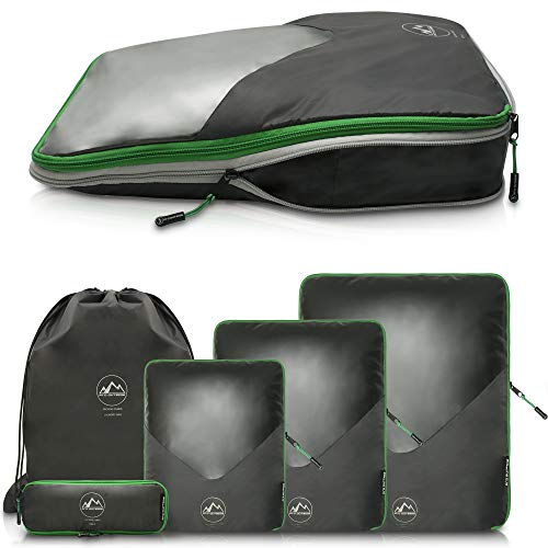 PRO OUTSIDE Premium Packing Cubes - Set da 5 pezzi con compressione e finestra trasparente, borse impermeabili per abiti per valigie e zaini, cubi per zaino o borse, colore: grigio/verde