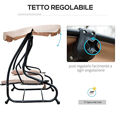 Outsunny Dondolo da Giardino 3 Posti Convertibile in Letto a Dondolo, Tetto e Struttura in Acciaio, 200x120x164cm Beige
