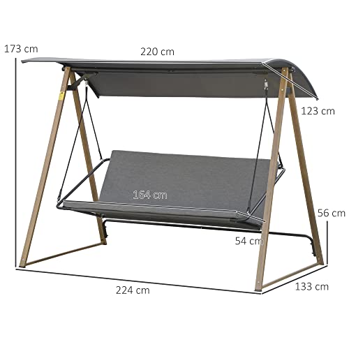 Outsunny Dondolo da giardino 3 posti con Cuscini e Tettuccio regolabile in Acciaio, 224x133x173cm, grigio scuro